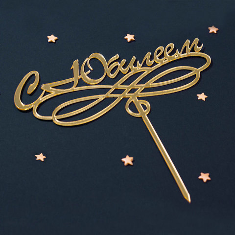 Топпер для торта на ножке “С Юбилеем” Золото Завиток