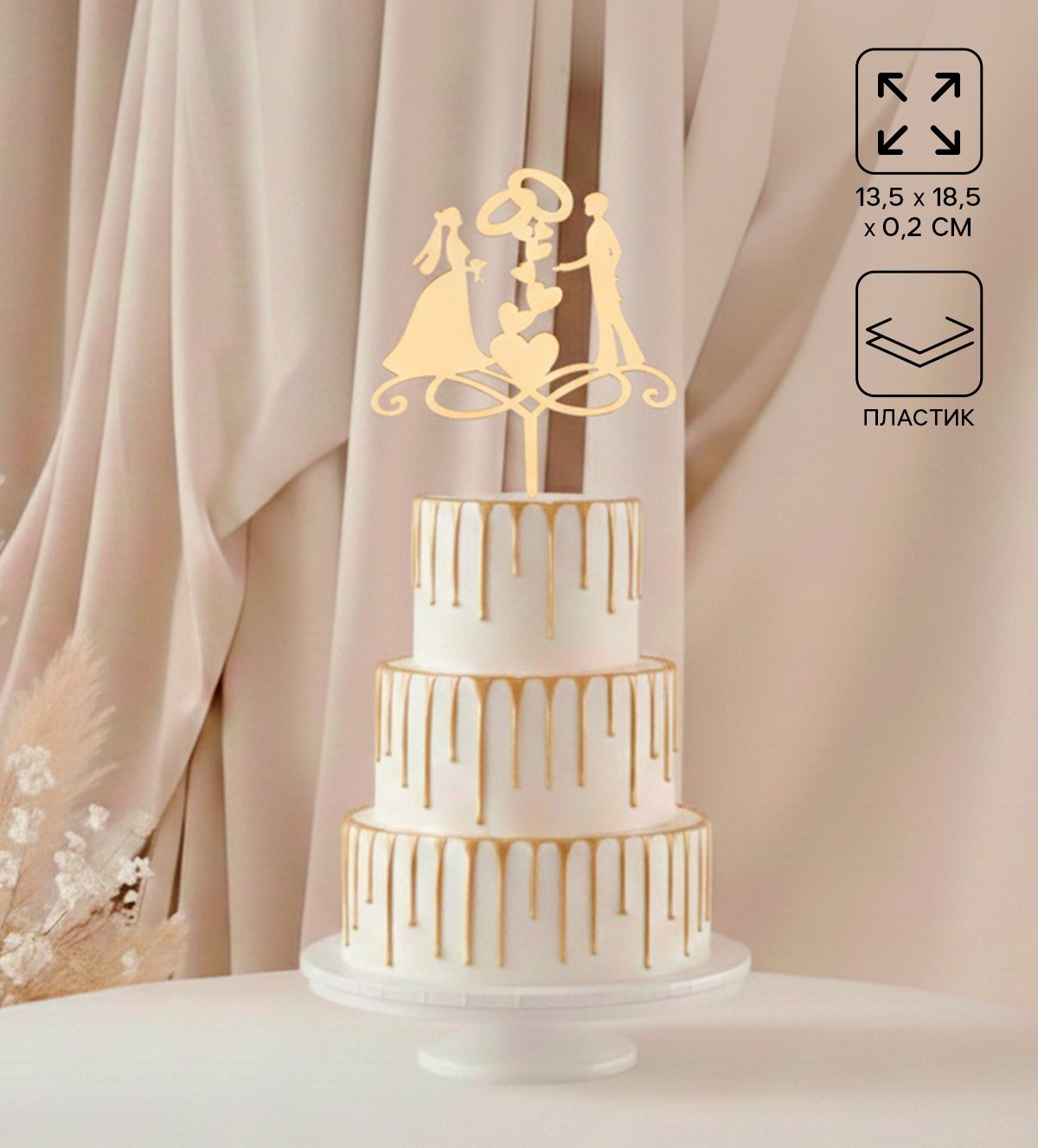 Топпер для торта «Обручальные кольца», 13×18 см, цвет золотистый