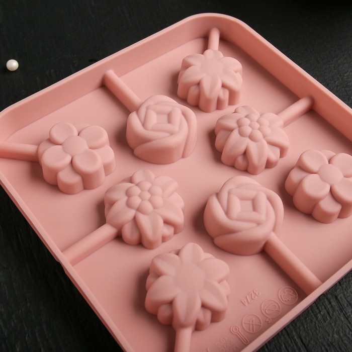Форма силиконовая для леденцов Цветочки 8 шт