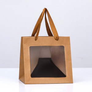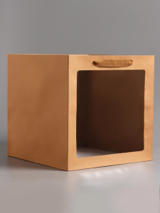 Пакет бумажный Крафт с окном и ручками 20х20х20 см