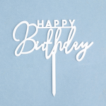Топпер акриловый Happy Birthday (с сердцем) серебро 2