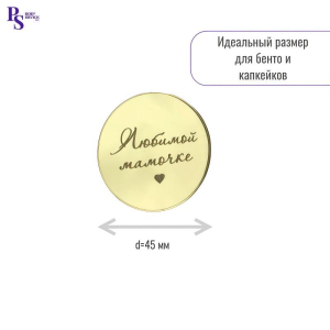 Топпер акриловый золотой “Любимой мамочке” d 45 мм