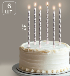 Свечи декоративные Серебристые 14 см 6 шт