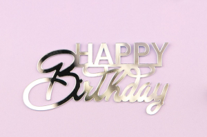 Топпер боковой для торта “Happy Birthday” Серебро №3/1