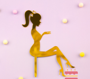 Топпер декоративный акриловый Женский силуэт с бантиком золото