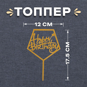 Топпер декоративный акриловый “С Днём Рождения” Золото