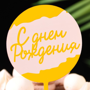 Топпер для торта акриловый Happy birthday КругЦветы