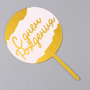 Топпер для торта «С днём рождения», Золотой с белым