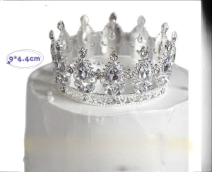 Корона декоративная на торт Мини Серебро (Белый камни) 9х4 см