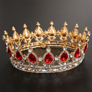 Корона декоративная на торт Золото (Красные камни) 12 см