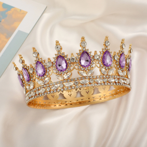 Корона декоративная на торт Золото (Сиреневые камни) 12 см
