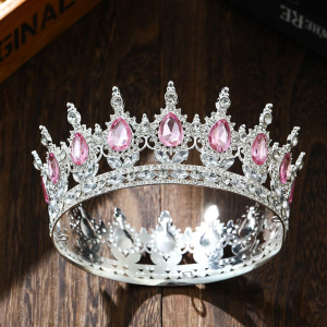 Корона декоративная на торт Серебро (Розовые камни) 12 см